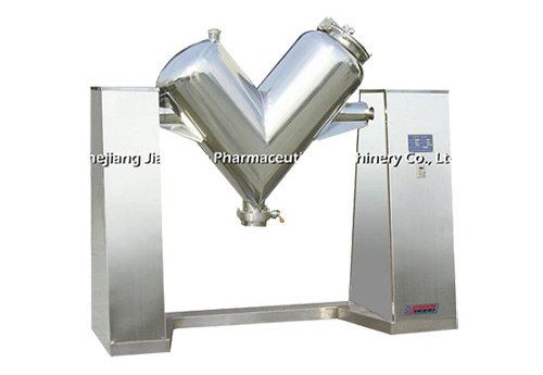 Такой тип смесителя подходит для равномерного перемешивания исходного сырья в виде порошка или пасты. Особенно значительный эффект достигается при смешивании сыпучих порошков и гранул. Машина оснащена V-образным смесительным барабаном, обеспечивающим эффективное перекрестное перемешивание сырья, ротационное многопозиционное перемешивание. Машина отличается уникальной конструкцией, высокой эффективностью перемешивания, отсутствием мертвых зон, однородностью смеси и т.д. Для разгрузки используется вращающийся дроссельный клапан; машина легко поддается санобработке, в нее удобно загружать сырье.