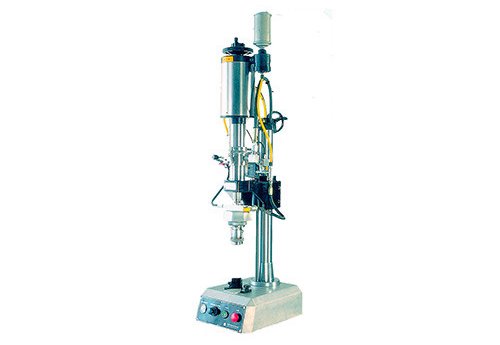 Устройство предназначено для подачи газа в тару с аэрозолями и укупоривания тары, устанавливается на столе и управляется оператором вручную. Контейнеры с насадками помещаются под укупорочный узел, оператор ногой нажимает на педаль, осуществляя процесс подачи газа и укупоривания одновременно.