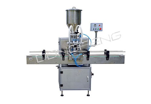 This machine is the automatic double piston liquid filling machine, it is safer to operate. This machine has two filling heads in-phase, improving the work efficiency. With adjustment handle of filling volume, the filling speed can be adjusted at will, with high filling accuracy.