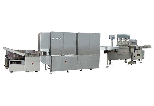 Designed to wash, dry, sterilize and fill 2 – 10 ml vials. Sterilization temperature is 300oC – 350oC. Main components of the machine are made of SS 304, the parts contacting the product are made of SS 316L. Production capacity is 300 bottles per minute.