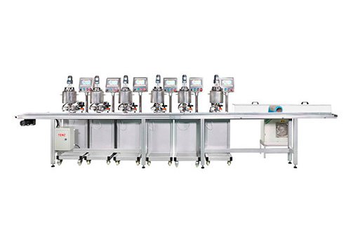 Model TL-5L-6S-1A is an automatic hot filling machine, suitable for hot filling jars or aluminum pans, such as lipstick, lip balm, eyeliner, liquid foundation and other filling products. Output: 10-60 pcs/min