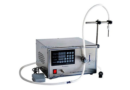 This filling machine is equipped with magnetic pump, it is good for filling water, juice, essential oil, solvent etc. This machine can be controlled by pedal switch or work automatically. It is widely used in food, drinks, daily chemical industries.