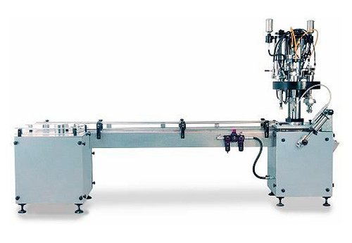The machine consists of two units: Rotating empty container feeder and Rotating aerosol filling with crimping and gassing unit. To operate the machine needs compressed air with pressure 8 bars. Capacity is 1,000 – 2,000 containers per hour.
