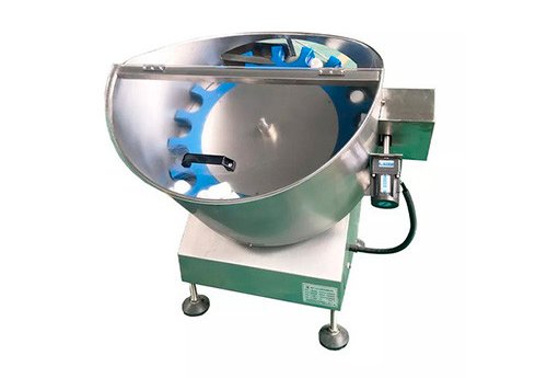 The motor drives the sorting flower plate. The bottles in the container begin to rotate from the under part to the upper part of the bottle sorting plate by the semicircle groove of plate and the guiding rod. The bottles in the semicircle groove are picked up continuously by the plastic turning strips, which are fixed on the bottle exit, turning around constantly. Then all the bottles, with mouth up, move in order along the conveying belt to the filling station.