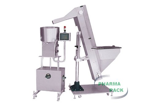 Canister desiccants are manually loaded into the hopper with elevator and then the elevator transfers them onto a turntable. Via the turntable, the canister desiccant transfers into the tunnel and is held by a grasping device. When a bottle arrives, the grasping device releases a desiccant into the bottle. When bottle orientation time reaches the preset value in the PLC, the pneumatic system automatically changes bottles. This equipment can be fully automatic and is applicable to insertion with more than one desiccant.