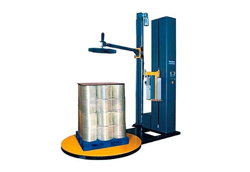 Machine is equipped with photo-eye pallet height sensor and its control system has HMI making it easy to operate and separate top, bottom & up-down wrap count selectors. Film tension adjustment is performed through the HMI panel. Turntable speed is adjustable within 3-12 rpm with frequency converter.