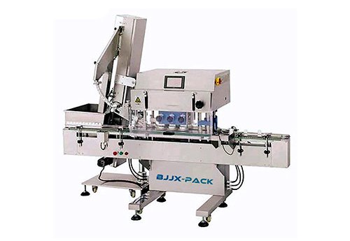 This Capping machine used for diversified containers in different materials and shapes, such as plastic bottle, glass bottle, metal bottle, etc. Production speed: 6000 bottles/hour