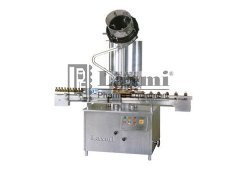 LAXMI Automatic High Speed multi Head ROPP / Screw Cap Sealing Machine “LRCS” series, It is supporting to our range of Bottle Filling from Semi-Automatic/Automatic line. All Liquid Contact Parts are of S.S. 316, the Body Structure is built up of S.S. 304 Pipe. Output: 200 VPM