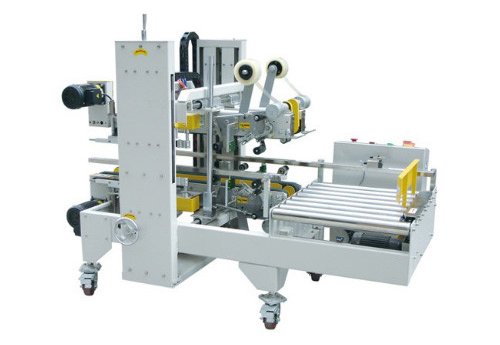 Designed to seal cartons on corners with capacity of 400 cartons per hour. Maximal package size is L500 × W500 × H500mm, minimal package size is L320 × W200 × H180mm. To operate the machine needs compressed air supply with a pressure of 6 kg/cm3.