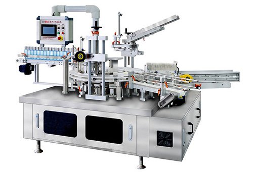 Suitable for packing such products, as bottles or aerosol cans into cartons. Equipped with frequency inverters, controlled by PLC, parameters are set via a touchscreen. For normal operation the machine needs clean and stable compressed air with a pressure of 0.6 MPa. Production capacity is 15 – 60 cartons per minute.