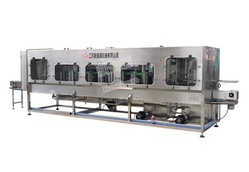 The machine is used to brush the outside of 5-gallon bottle, after which it is washed by pure water. Bracket, block plate, control box are made of SS 304. Equipped with circulating water tank, circulating pump, double strainer, organic glass window.