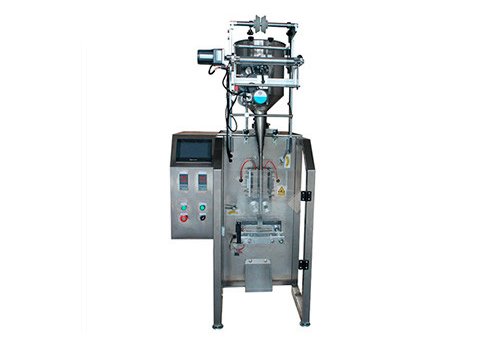 This Machine is designed for liquid products. Features bilingual display control, stable dual light source photoelectric check, intelligent temperature control, and automatic measuring, bag making, filling, sealing, printing, counting. Specifications: measuring range 1-50ml, bag size (L)30-50mm x (W)25-100mm, packaging speed 40-60 bags/min, power 1.5KW, three or four-side sealing. Piston type filler. Stainless steel case.