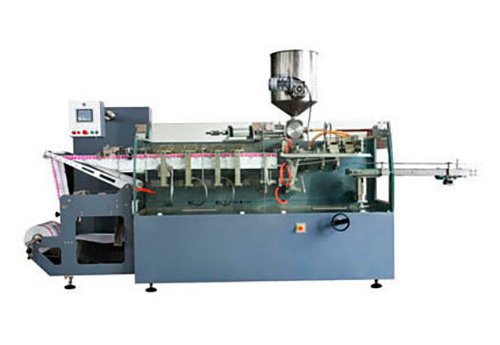 Horizontal bag packing machine for granule, powder, liquid, tablet, sauce, paste etc. It allows to mount a variety of different types of fillers, cup fillers for granules, auger fillers for powders and pump fillers for liquid or viscous products. Speed: 60 pcs/min