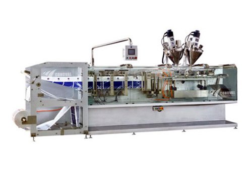 Horizontal bag packing machine / Flat pouch packer for granule, powder, liquid, tablet, sauce, paste etc. Different types of filler can be used according to the characteristics of the product. Speed: 120 pcs/min