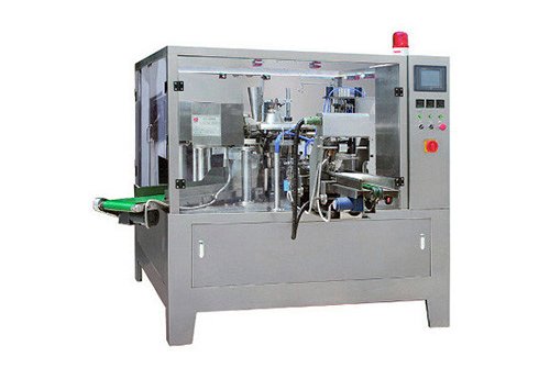 Bag-feeding rotary bag packing machine. The packing materials loss low, what this machine is used the preformed bag, the bag pattern is perfect and has a high quality of the sealing part, this improved the product specification. Speed: 30 pouches/min