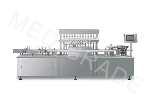 It is used for bottling antibiotics and bottled water. It is equipped with a mechanical positioning system and tracking of the filling process.