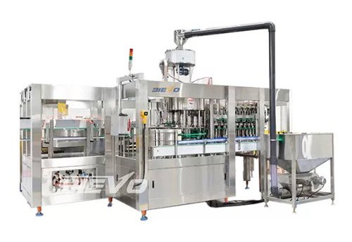 The machine is mainly used for filling soft drinks. It combines washing, filling and capping as one automatic body suitable for PET or other plastic bottles. High automation level, compact structure, attractive appearance, convenient and simple operation, safe and reliable and adjustable continuous production capacity, low labor intensity. PLC controlled, parameters are set via HMI on a touchscreen.