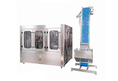This rotary mineral water filling machine CGF14-12-5 has three parts of stations. The mineral water filling machine also can fill pure water and drinking water. Washing-Bottles are placed on the conveyor and taken to the washing unit. Their inside and outside are washed with distilled water and dried.