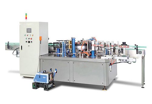 Linear labeling machine for labeling on round containers. Productivity: 8000-30000 Bottle / hour