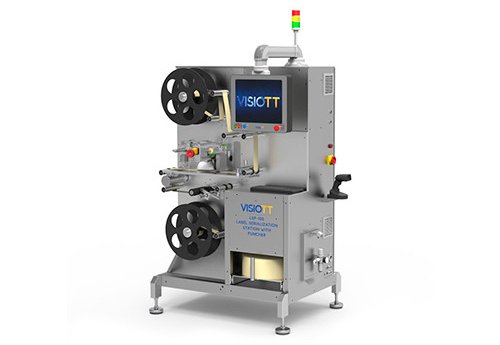 The machine can print all needed information on the label in compliance with the code and regulatory re-quirements. When the station is turned on, the coil with the empty labels rotates, and the sensor detects the label size and determines where the code will be printed. VISIOTT TPS Vision Inspection technologies are in charge of controlling applied code or readable information.