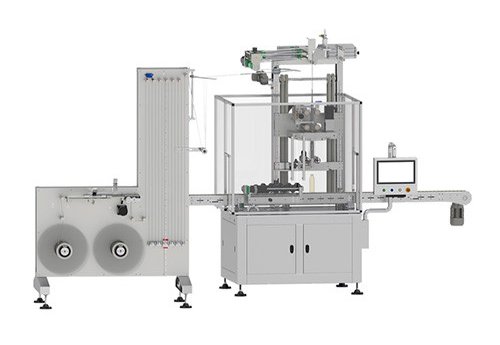 Designed for packing glass, plastic and metal bottles into sleeve label made of PET or PVC. Applicable sleeve size must be within 35 – 130 mm x 40 – 300 mm. To operate the machine needs compressed air supply with a pressure of 6 - 8 Bars. Air consumption is 300 L per minute. PLC controlled, parameters are set via HMI on a touchscreen.