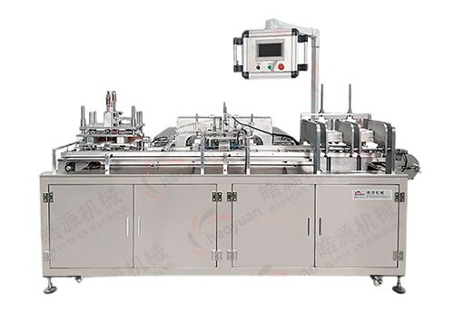 This machine works steadily and continuously. It is suitable for sealing all kinds of masks, medical supplies, sanitary supplies, daily necessities, hardware products, food and other products. Fully automatic bagging, photoelectric correction, no burr, fault forming. The equipment can be configured with trippers according to different types. PLC (Panasonic) controlled; parameters are set on HMI on a touchscreen.