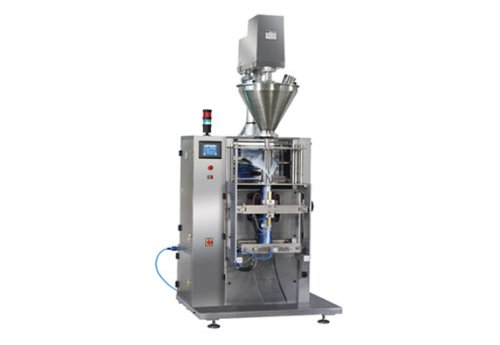 A vertical form, fill and seal machine for producing centre-sealed pouches handling all types of free flowing/non-free flowing powders. PLC controlled, parameters are set via touchscreen. Filling range is 50 – 2500 g depending upon density of the product. Capacity is up to 65 packs per minute.