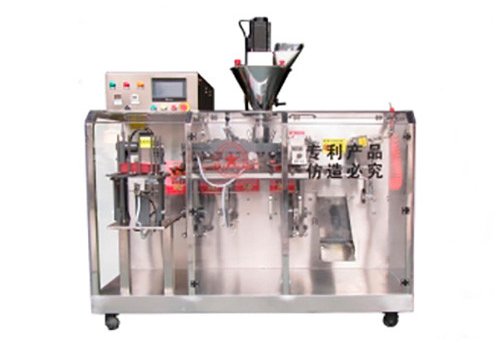 The machine is designed for packaging all kinds of powder products into premade zipper pouches or premade bags. It can do filling and sealing for such bag types as stand up zip pouch / stand up barrier pouch / stand up zip bag / stand up zip lock bag / stand up zip / stand up zipper pouch, doypacks, spout pouch (with nozzle or cap in the corner of the pouch), four sides sealed bag, paper bags, etc.