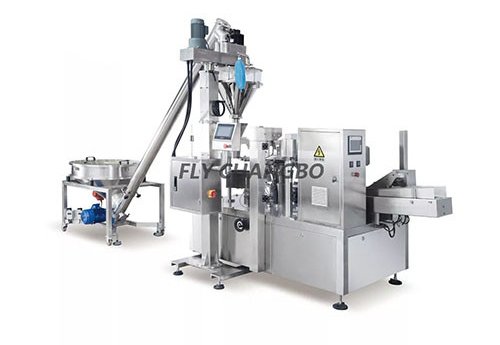 Its main usage is powdered products, such as flour, milk powder, cornstarch, soy flour, glucose powder, etc. It with 6 stations, filling range from 100-1000ml, speed 2000-2500 pouches per hour.