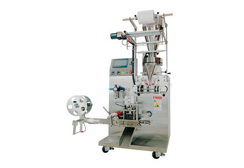 This machine is suitable for particles materials, such as tea, coffee, food, medicine and chemical products. All the works of bag making, measuring, filling, sealing, cutting and counting can be done automatically. The touch screen operation, PLC controlled, parameters are set via HMI on a touchscreen. Measuring range is 1-5 g (2-10 ml).