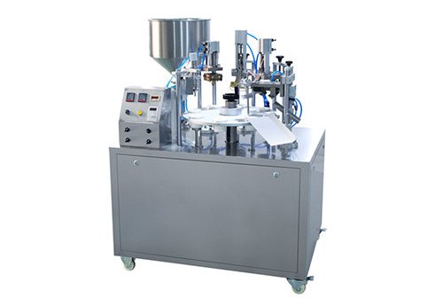 Semi-automatic Plastic/Laminated Tube Filling and Sealing Machine. Manually feeding the tubes onto the machine, it can automatically position the tubes, fill the material into the tubes, heat both inside and outside of the tubes, seal the tubes, press the codes, and trim the tails and the finished tubes exit. Capacity: 30 pcs/min
