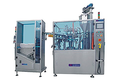 Filling machine CFGZ-80A-TB applicable for aluminium tube and metal tube. The machine has novel design, compact structure, multi-function and easy operation in order to meet users in pharmaceutical, food and chemical industries. Capacity: 80pcs/min