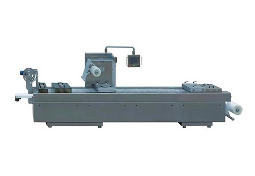 The automatic stretch packaging machine uses the lower film to stretch and shape, and then the package is put into the formed lower film cavity, and then the package is vacuumed or inflated in the sealing chamber. It is especially suitable for batch packaging of various raw and cooked foods, chicken wings, chicken feet, soy products, condiments, meat products and other small-package materials. Packing speed: 2-6 times/minute