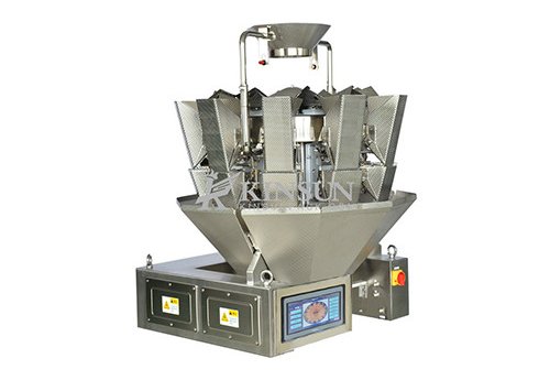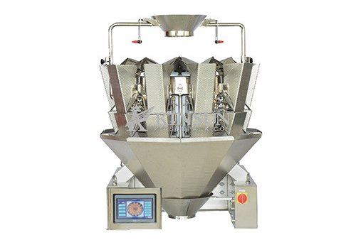 The weigher accurately weighs various items, including snacks, nuts, and frozen foods. Constructed from stainless steel, it ensures hygiene and durability. This machine utilizes a step motor driving system and a user-friendly touch screen. It's designed to improve weighing efficiency and consistency for packaging processes across different industries.