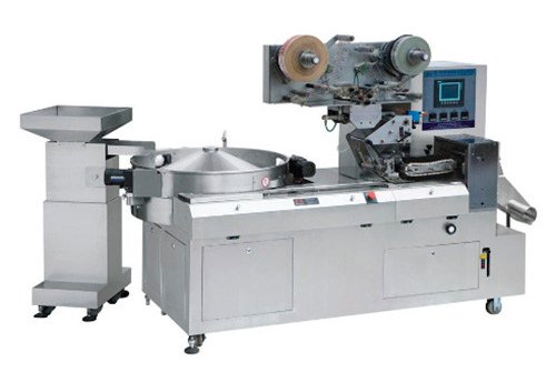 The machine is suitable for automatic feeding and flow packing of candies or products of similar sizes. PLC controlled; parameters are set via HMI on a touchscreen. The screen allows you to clearly see the working status of the machine. Usage of famous brand electrical parts ensures quality of this candy packing machine. Capacity is up to 1,200 pcs/min.