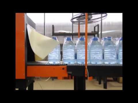 The packaging machine is designed to implement the process of packaging PET containers of various sizes in heat-shrinkable plastic film on an edge-raised substrate. Output is 600 pcs/h.
