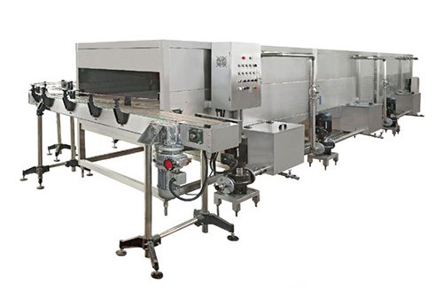 This machine can reduce the temperature of hot filling drinks to 36℃-40℃, or increase the temperature of cold filling carbonic acid drinks to 36℃-40℃. It is used in PET bottled hot filling drinks or carbonated drinks production line. This machine can eliminate the condensed water on the external side of bottles, keep bottle clean and dry, also has antiseptic effect.