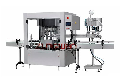 This machine can be used in various configurations containers and irregular containers. When cap tightening finished, bottle and cap relatively stop. Production capacity with 6 heads can reach 4800 bottles/hour; with 8 heads — 6000bottles/hour. This machine has eight mechanical hands, dispatches caps in high speed with no inverse cap, which can be used in various configurations containers, irregular containers.