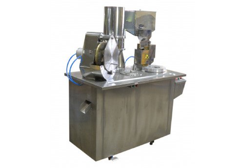 A semiautomatic device for filling capsules K4 is used in the pharmaceutical industry for filling in semi-automatic mode (manual transition between operations) hard gelatine capsules with dry mixtures in the form of powders, granules, and pellets.