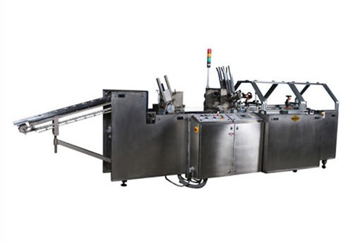 Designed to erect cartons and close them after interconnected filling machine. Cartons are closed by hot melt adhesive. The machine is equipped with automatic leaflet insertion device. Easy and fast changeover, optimal speed is 120 cartons per minute.