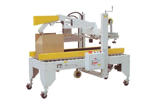 This equipment is used in sealing top and bottom of the case. It uses tape to seal cases. It can work independently or connect to a production line, easy to operate. The machine needs an operator to place the case on the machine or the front conveyor sends case to the machine.