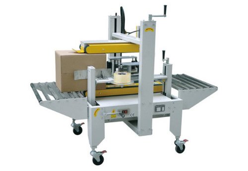 Side sealing machine for the side of the opening of the cartons, such as beverages, floor tiles, sealing effect is smooth, standardized, beautiful use that is affixed tape sealing, fast economic, easy to adjust, both sides of the tape with a seal. According to the specifications of the carton, manually adjust the width and height, up and down drive, both sides of the box, fast, smooth.