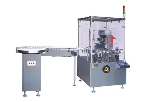 This machine is suitable for automatic feeding product of multi-variety multi-specifications into cartons, i.e., it can pack blisters, bottles, etc. into cartons within 65 – 120 x 30 – 85 x 15 – 55 mm in size. To operate the machine needs compressed air supply with a pressure of at least 0.6 MPa. Output is 30 – 120 cartons per minute.