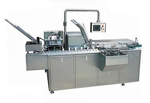 SPJ100 Fully Automatic Cartoning Machine applies to the encase packing of blisters, vials, cosmetics and similar stuff. This machine can fold leaflet, open carton and insert stuff with leaflet into cartons, printing batch number and close carton automatically.