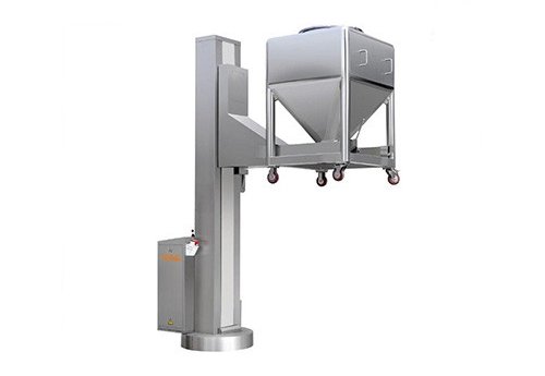 The machine is mainly used for conveying and charging solid materials in the pharmaceutical industry. It can work with the mixer, tablet press, capsule filler, etc. It is also widely used in such industries as medicine, chemical industry, food, etc. The machine is mainly composed of chassis, column, lifting system and other components.