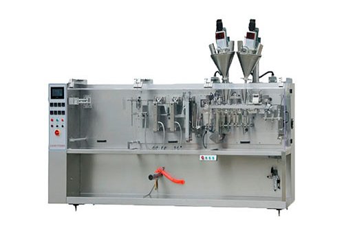 The machine includes plastic film placement, bag forming, bag bottom sealing, vertical sealing, shearing, bag opening and filling, bag conveying, bag top sealing and other mechanisms. Driven by motor spindle on the CAM complete agencies coordinate their movements, and the location on the main shaft encoder feedback signal. PLC controlled, parameters are set via HMI on a touchscreen.