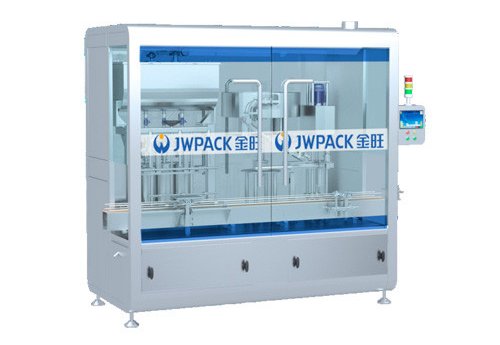 This is a combined packing machine integrating filling and rotary cover. Suitable for filling of water agents and high viscosity materials. The whole machine has the characteristics of compact structure, small land area, easy cleaning, easy operation, convenient and fast replacement of quality rules, which can save to the greatest extent human resources.