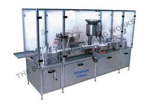 These machines are manufactured from high -grade quality material. Machine with built-in turntables at infeed and outfeed with individual drives to match the speed of incoming and outgoing vials for smoother operation. All parts coming in contact with liquids and rubber stoppers are made of ss 316 materials. Volumetric Liquid Bottle Filling Machine works on volumetric principle with diving nozzles.