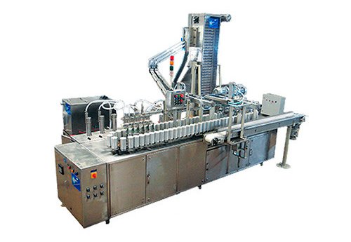 The machine is equipped with automatic pick and place ejection mechanism, its change over system is exclusive and easy. Filling accuracy: +/- 0.5 %. Fully automatic systems for filling, capping, cap elevating, ejection & online inspection system. PLC controlled with HMI Panel. Filling volume: 5 – 250 ml.