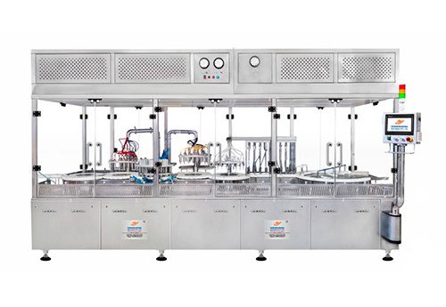 This Machine performs integrated filling, inner plugging, and screw capping specifically for small pharmaceutical bottles. It is designed for sterile, high-precision packaging of sensitive products like ophthalmic and otologic solutions. Encased in stainless steel, it ensures hygiene and accuracy. The machine offers a high output capacity of up to 200 bottles per minute, making it ideal for efficient pharmaceutical production lines.